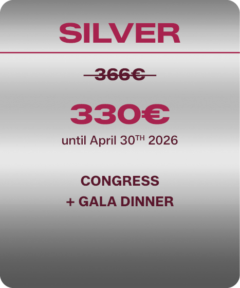 It is also possible to register accompanying persons, assistants or technicians by completing the dedicated registration form. For accompanying persons, an additional fee (60€) includes the Gala Dinner, while for assistants and dental technicians the additional fee (125€) includes access to the Congress and the Gala Dinner.